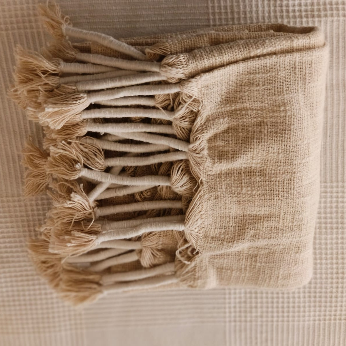 Expertly crafted and woven with 97% cotton, this throw is a must-have addition to any room. Its soft and breathable material ensures a comfortable wrap, while its durable construction promises long-lasting use. Elevate your experience with this luxurious throw. This throw measures 127 * 152 cm.
